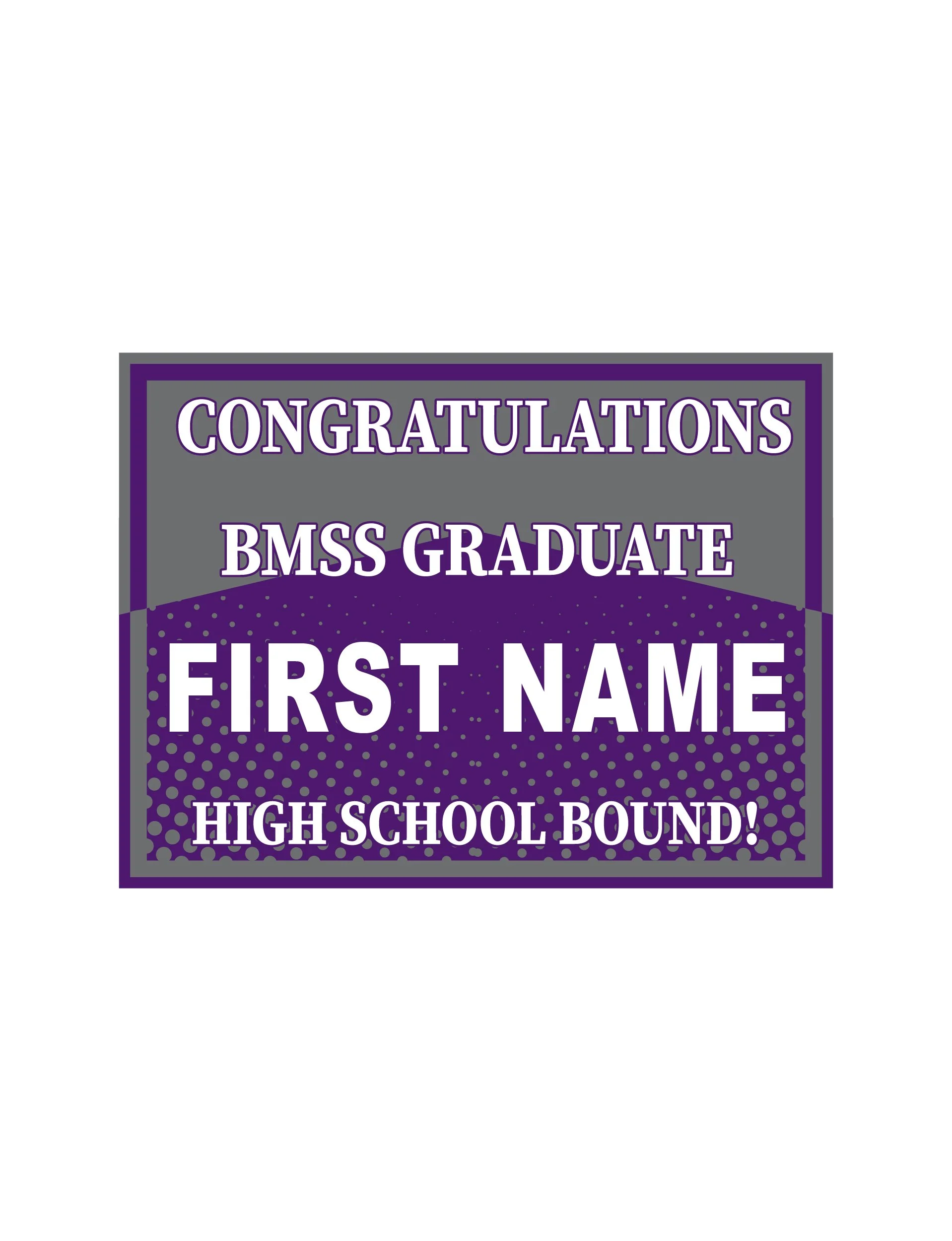 BMSS Spirit Wear › BMSS Congratulations Yard Signs Image 1 of 2 Image 2 of 2 BMSS Congratulations Yard Signs from $25.00 This is a fundraiser for the BMSS PTO. $10 from every sign will go to the PTO.Personalized yard sign, with the student’s first name. Signs are available in either single- or double-sided versions. School: Select School Boerne HS (Purple) Champion HS (Navy) Sides: Select Sides Single Sided Double Sided Add To Cart Added! This is a fundraiser for the BMSS PTO. $10 from every sign will go to the PTO.Personalized yard sign, with the student’s first name. Signs are available in either single- or double-sided versions.